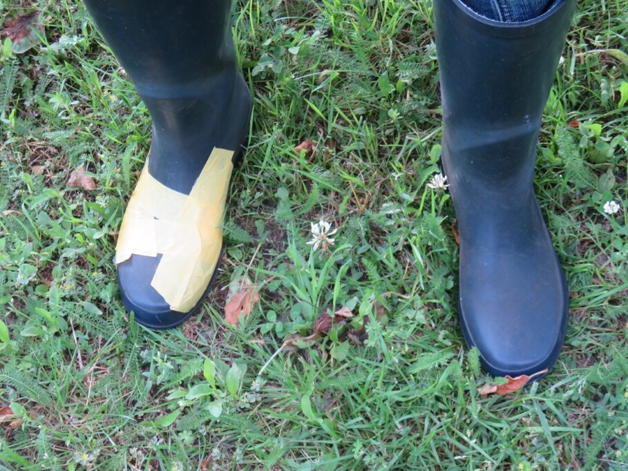 Auf der Obstwiese musste die Benjeshecke entlang des Teichs verlängert werden, um das angefallene Schnittgut unterzukriegen. Dazu musste auch der Zaundraht gerichtet werden.