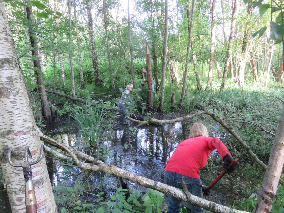 Am 29.06. hatten wir einen Einsatz am Burbek im Rempen. Um die Fließgeschwindigkeit des Burbeks etwas zu erhöhen, zogen wir auf einem Teilabschnitt die Gehölze aus dem Bachbett. Dabei blieb keiner von uns sauber.