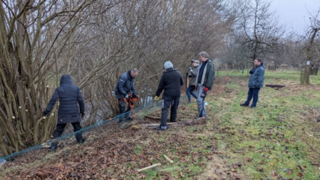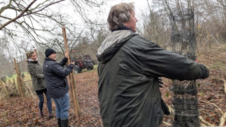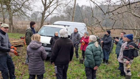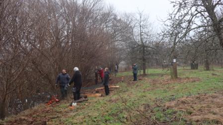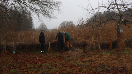 Am Samstag, den 13.12.25, trafen wir uns auf der Obstwiese, um einige marode Zaunpfähle auszutauschen und den Maschendraht neu zu spannen. Unterstützt wurden wir bei den Arbeiten von fünf Mitgliedern der Naturhelden SH aus Neumünster, die auch die Finanzierung der 100 neuen Eichenpfähle sicherstellten.