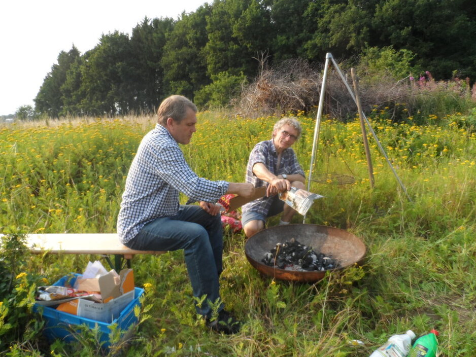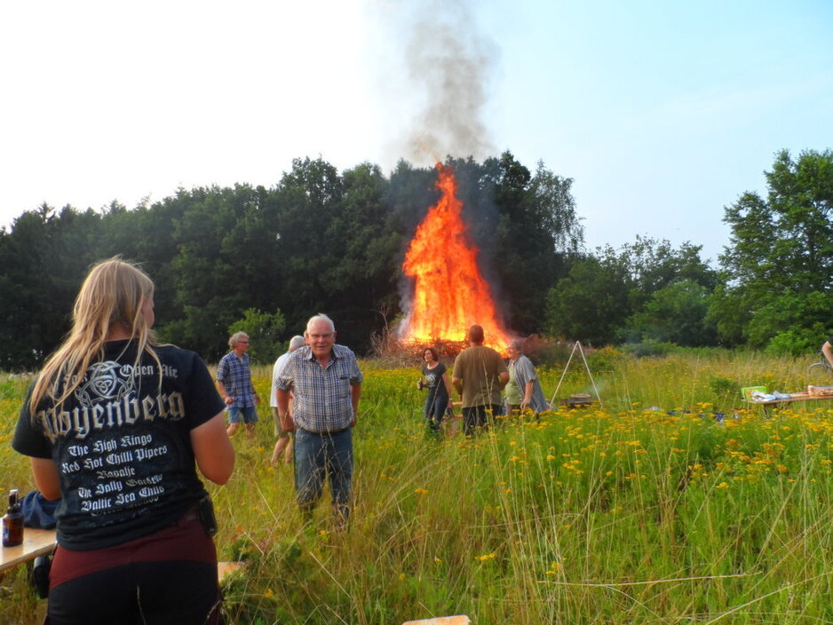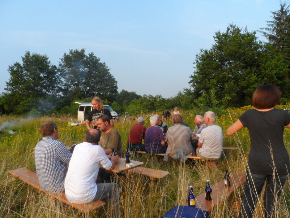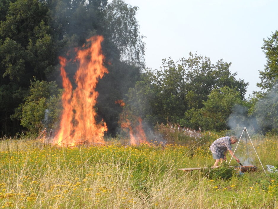 Im Frühjahr musste unser Osterfeuer wegen schlechter Witterung leider ausfallen. So musste das Buschwerk auf dem Neuth bis August warten. Bei diesem zweiten Anlauf meinte der Wettergott es dann gut mit uns. Das Buschwerk konnte ziemlich komplett abgebrannt werden, während wir gleichzeitig unser Danke-Schön-Grillfest für unsere Aktivisten abhielten. In zeitweise "hitziger," aber doch sonst in guter-Laune-Atmosphäre hatten wir bei leckerem Essen in netter Gesellschaft ein paar gemütliche Stunden bis zum Dunkelwerden.